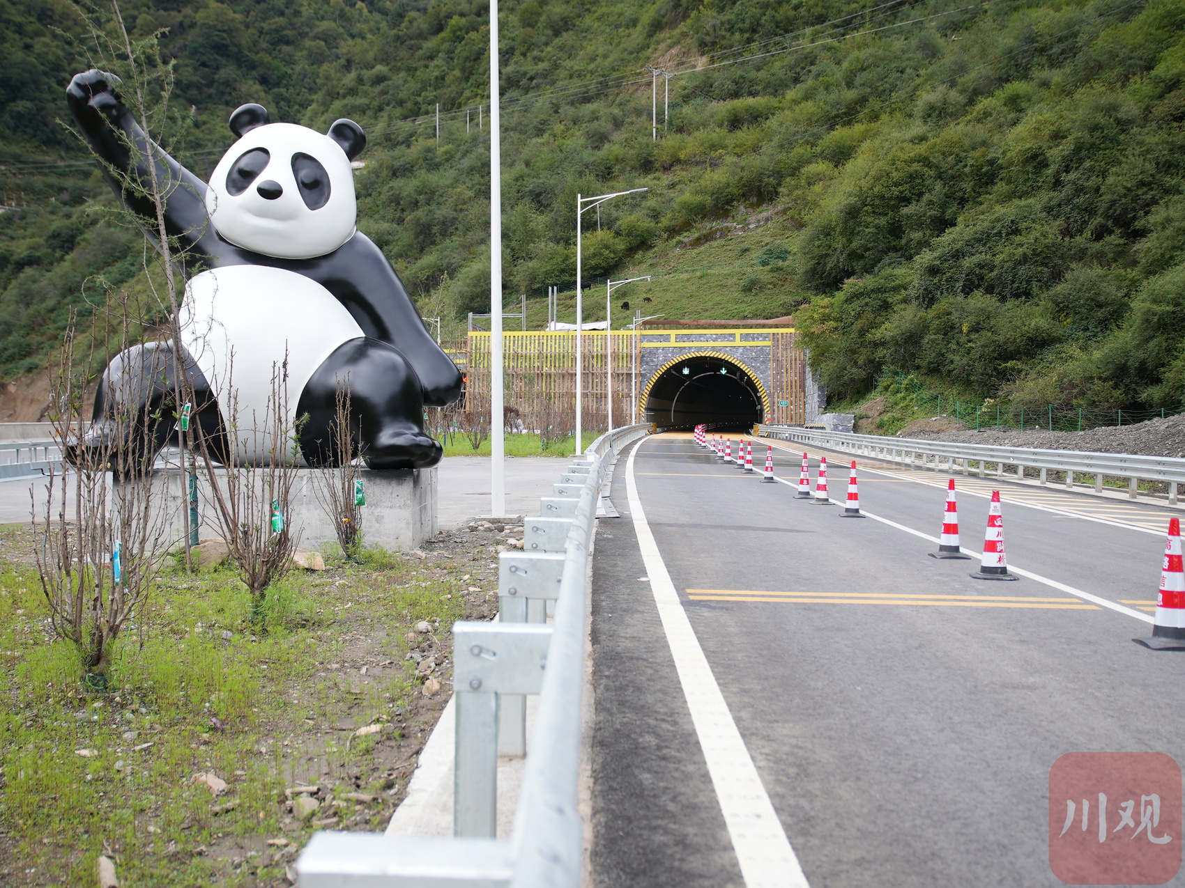 隧道口的熊貓雕像